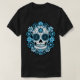 Dia de los Muertos sockerskalle i färgade blått omgivna av blommor.