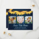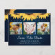 Fotokollage för Rustic Navy Blue blommigt bröllop förlovning sparar datumkorten med solblommor och snöre på en marin övertoningsbakgrund. Anpassa det här kortet enkelt med information om bilder och bröllop, inklusive en webbplats för bröllop. Matchande objekt är tillgängliga.