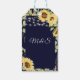 Blå solros Eucalyptus String Ljus Bröllop Presentetikett