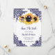 Blått och bröllop spara datum-kort för elegant med solblommor med solblommor, ljus och blommigt snöre.