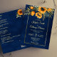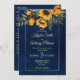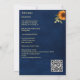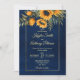 Fall bröllopsblått med gult solblommor, grönt marint guld-blommigtens bröllopsinbjudningsmall för alla i ett med QR-OSA-kod längst bak.