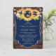Blå solrosblomma Rustic Wood Bröllop Inbjudningar