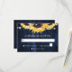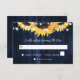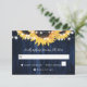 Rustic navy blue and sunsun bröllop OSA card som innehåller solblommor och sträng ljus mot bakgrund av rustiskt trä. Utformning av perfekt-kort som komplement till din marinblå rustiska bröllopsfest som inspirerats av solrosblommor.