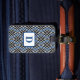 En blå, vit och svart abstrakt mönster som kännetecknas av dynamiska, rombformade former som överlappar varandra och skapar en synligt slående och modern sammansättning.