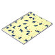 Blå kattungar leker med röda fiskar på en gul bakgrund