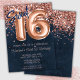 Blåbläckfisken i ro 16 Födelsedagsfest inbjudan och ro guld i elegant, modern 16 födelsedagsfest inbjudan för en 16-årig flicka med moderna skript- och roligt-folie-ballonger.