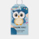 Blå sötnos skogsbarn ugglor baby shower presentetikett