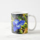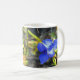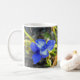 Blå blommor med briljant blå spindelmak i öga dekorerar ett stabilt keramiskt mugg. Idealisk presentidé för att njuta av en uppfriskande kopp av kaffe eller te! Även resemugg, stomme och två storlekar med alternativ för färg finns tillgängliga.