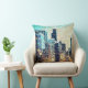 Blå stad byggnad i mosaic stil med befrielse kudde