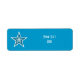 Blå stjärna, etikett för din text, liten blå returadress etikett