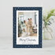 Helgdagskort med ljusblå anpassningsbar med söta små stjärnor. Anpassa enkelt de här nybörjarfotokorten till God jul med din bild och en familj till namn.
