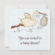 Blå Stork Babypojke Shower Inbjudningar