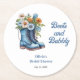 Stövlar & Bubbly Bröllopsfesttema - Blå landsbyxor och bubblig västerländsk cowgirl bröllopsfest runda pappersunderlägg.
