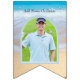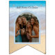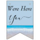 Eleganta dammiga blå flaggor för strandbröllop med fotoram och text för de som inte kan närvara på bröllopet. Den har en fotobåge ram en textmall för namnet och en elegant blå havs bakgrund