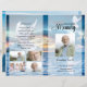 Snygg och professionell-mallen för begravningsprogram med blå strand och duv Bakgrund, lätt att redigera och skriva ut.