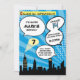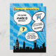 Blå superheros Tecknad Bok Styld Födelsedagsfest Inbjudningar