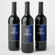 Blå/svart partiförmån vinflaska etikett
