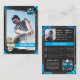 Det här anpassningsbara baseballkortet är perfekt för att fira din favoritspelare. Med sin djärva blå och svarta design och ett utrymme för en spelares foto, statistik och en anpassningsbar bakgrund, kommer det här kortet säkert att imponera på alla basebollfantaster. Perfekt som lagpresent, för senior night eller bara ett roligt sätt att visa ditt stöd för din favoritspelare.
