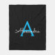 Blå och svart falskt skript monogram lägg till ditt eget namn fleecefilt. Detta gör den perfekta söta 16-årspresenten, bröllop, bröllopsdusch, årsdag, baby shower eller möhippa present till någon som älskar glam luxuöst och chic stilar.