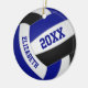 Det här coolan volleyball-laget färg har ett ornament för flickor eller pojkar med en realistisk tittar volleyball med royalets blå, svarta och vita paneler - anpassa med idrottsmannens namn och år på ornamentens framsida och baksida - av katz_d_zynes