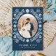 Tack för det här blå Talavera mexikanska temat Foto Tack för ditt kort! Det här kortet blandar kulturell charm med elegans med elegans. Det är ett intrikat Talavera mönster i häpnadsväckande blånyck. Lägg till ditt favoritfoto från bröllop för att göra det personligt och hjärtligt - en viktig sak som dina gäster uppskattar nästan lika mycket som de minnen du delade!"Matchande objekt i vår butik Cava Party Designer.