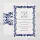 Blå Talavera-plattor Spansk Fiesta Spara datumet Inbjudningar