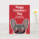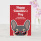 Fransmän, skicka ett valentinskort till din människa bara från dig. Designen har en illustration av en söt blå och tan fransk bulldog med röda solglasögon på en röd bakgrund med ett subtilt hjärtmönster. Texten på framsidan lyder "Glad Alla Hjärtans Dag från den du älskar mest" men kan ändras. Texten på insidan lyder "Jag älskar dig paw-sitivt" men kan också ändras.