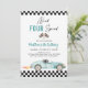 Den här beundransvärda inbjudan innehåller en blå vattenfärgsbil i tävling med flamdetaljer.