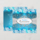 Blå Quinceañera inbjudan. Elegant spets och fjäderdesign med silverblommig ram. Observera: Alla platta bilder!