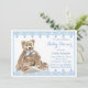 Bedårande baby blå teddybjörn baby pojke shower inbjudan. Du kan enkelt anpassa denna söta teddybjörn baby shower inbjudan för ditt evenemang genom att lägga till dina detaljer i typsnitt och färg, formulering, och du kan välja bakgrundsfärgen efter eget val.