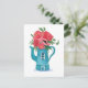 Blå Tekanna House med Red Flowers Postcard Vykort