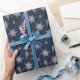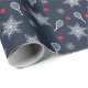 Tunnus blĂ„ 💙 tennis julomslutning papper. Vita tennisracketar, röd tennis bollar och mĂ„nga söta vita flingor snö pĂ„ marin blĂ„ bakgrund.
