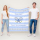 Den här filten har en roligt i blått och vitt med korsade tennis-rackets och är redo för dig att anpassa dig med namn. Den medföljande bildtexten är "Tennis - det är ett slagspel" eller så kan du anpassa det här också. Bakgrunden har stora ränder i blek blå och vit, och det finns fler tennisracketar i rand och grund.
