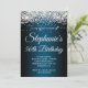 Skapa din egen snyggt fantastiska 50-årsjubileum eller annan midmåls- eller födelsedagroféinbjudan till henne. Den översta delen av inbjudan har dekorativ faux glatt vit grafik och silver glitter. Den digitala konsten i bakgrunden har en havsfärgad och svart kant-färggradient. De lyxiga gnistor, shine och glitter kommer att skapas med konstnärligt inslag som skrivs ut som ett foto.