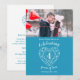 Enkel hjärtformad steneffekt blå topas linje konstgrafik akvamarinblå och vit lägg till eget foto 4:e bröllopsjubileumskort. Anpassa med din egen fjärde bröllopsfest detaljer och ett fotografi av jubileums paret. 4:e bröllopsjubileum är associerad med ädelstenen blå topas och hjärtat symboliserar kärlek. Grafik och design av Sarah Trett för www.mylittleedenweddings.com på zazzle.