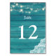 Pressa upp bröllop eller party bord med det här blåa träet, snöre, ljus Bordsnummer Card.