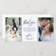 Blå trådlöst skript Två foton i Bröllop Tack Kort