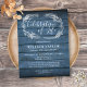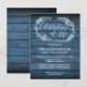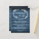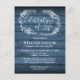 En rustik livets firande minnesinbjudan postkort med en handritad bladverksgirland på en blå träpaneler bakgrund. Designad av Thisisnotme©
