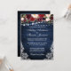Bröllbjudan för Rustic Blue Wood Snöre Ljus Burgundy Watercolor Blommigt - Foto Back