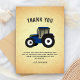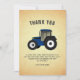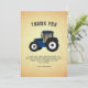 Denna design har en söt blå traktor med modern typografi på en vintage pergamentbakgrund.