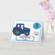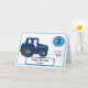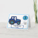 Tredje födelsedagskortet med blå traktor och hund. Detta illustrerade kort är perfekt för föräldrar eller mor- och farföräldrar till ge till en son/sonson när han fyller tre år. Kortet lyder "Grattis på födelsedagen" på utsidan och rymmer utrymme för pojkens ålder och namn. Det inre meddelandet kan också vara personlig.