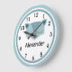 Anpassa den här akryl-väggklockan utskriven med en söt räv ansikte för ett barn med hans eller hennes namn. Skapat i blått och vitt färger med en cirkel gräns som är så söt för daghem eller småbarn. Snygg babydusch eller småbarn-gåva. Ditt val av medel eller stor storlek.