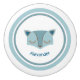 Anpassa den här knoppen med en söt räv ansikte för ett barn med namn. Skapat i blått färger med en cirkel gräns. Nicefördraget för daghem eller småbarn, koordinater med lampor, kuddar och andra artiklar för daghem på www.zazzle.com/kidsunique Finns även i rosa och orange.