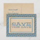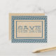 Elegant och modern Trendiga Ränder Spara Datum Postkort med en falsk kraftpapperlook bakgrund och en stilren rand med blå ränder. Denna design är ett enkelt men trendigt val för att tillkännage ditt kommande bröllop. Lätt att anpassa, lägg bara till dina bröllopsdetaljer. Klicka på "Anpassa det" för att hitta fler anpassningsalternativ.