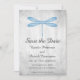 Elegant och enkel bröllopsinbjudan för att spara datum med en blå trollslända mot en grå grungebakgrund. Denna design är ett unikt val för att tillkännage ett modernt bröllop. Lätt att anpassa med dina bröllopsdetaljer. Klicka på "Anpassa" för att hitta fler anpassningsalternativ.