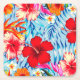 Blå Tropiska hibiscus-blommor Underlägg Papper Kvadrat