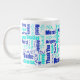 Blå turkos flerspråkig Tack-typografi Jumbo Mugg