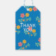 Blå tusenskönas vintagebukett Mönster tack etiketter. Söt, feminin, flickaktig, snygg och stilfullt blommönster design av Dreaming Cocoon. Texten på framsidan är "Tack" och texten på baksidan är "TILL / FRÅN". Underbart tack-gest för alla tillfällen. Du kan alltid ha en personlig touch på detta tack-kort genom att ändra orden vid Lägg till text - Framsida och Lägg till text - Baksida, för att passa ditt behov.