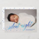 Julhälsningskort tryckt med ditt foto som täcker hela kortet. Tyst natt är skrivet med en tunn skrift och fyllt med en blå gradient omgiven av små blå snöflingor.