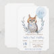 Anpassningsbara födelsedagsinbjudningar med blå uggla, Födelsedagsinbjudan med uggla, Utskrivbar uggleinbjudan, Pojkens födelsedagsinbjudan med uggla | Mall för 1-års födelsedagsfest med uggla, Utskrivbar inbjudan för första födelsedagen, Födelsedagsinbjudan med ballonger